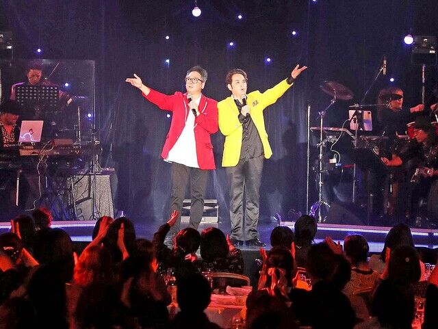2人は昨年12月、植草のディナーショーに錦織がゲスト出演して13年ぶりに共演。そろい踏みのフルステージ開催は初めで、ショータイム前の食事スタート時はファンとの乾杯で節目を祝った。