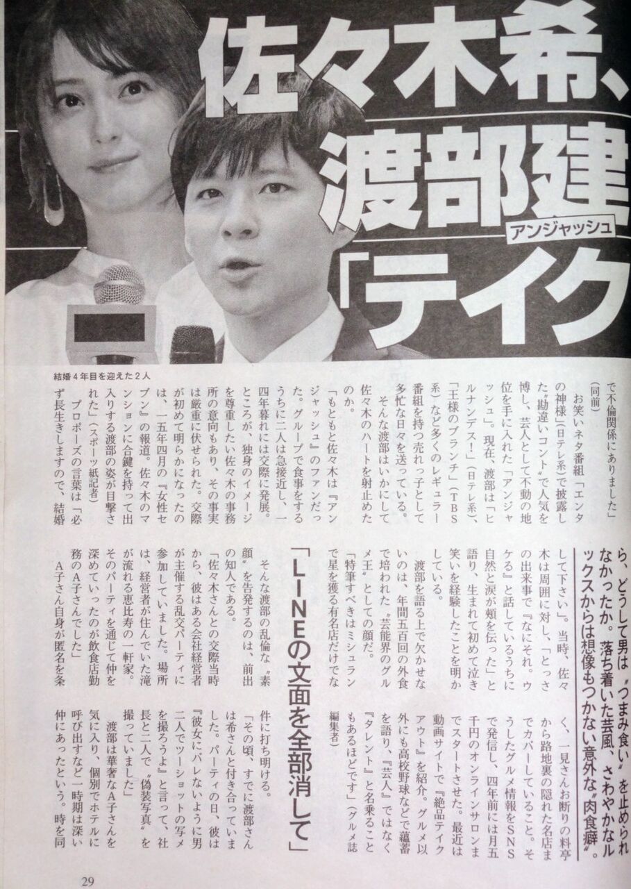 ・子供が生まれると「疲れた(佐々木希に)家庭の時間を持つように言われるのがウザイ。束縛されすぎて遊べない」と愚痴る