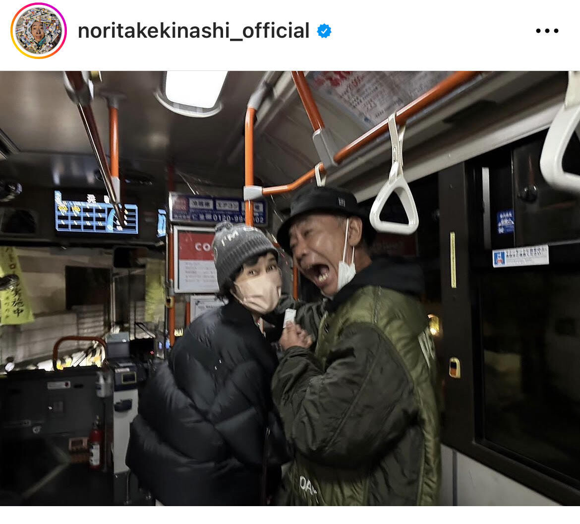 とんねるずの木梨憲武が2日に自身のインスタグラムを更新。妻で女優の安田成美と”バス”に乗車した様子を公開した。