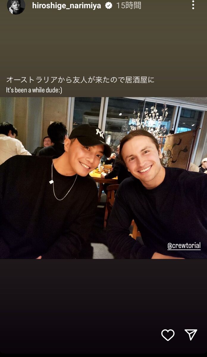 先月に「減量中 筋肉量減らさずに1か月半で6kg減 体脂肪率2%減」と減量成功を明かした平宮さん。12日のストーリーズでは「FINNNISHED!! WORK OUT」とつづり、トレーニング後の姿をアップ。さらに13日には「オーストラリアから友人が来たので居酒屋に」と外国人男性とのオフショットを掲載した。