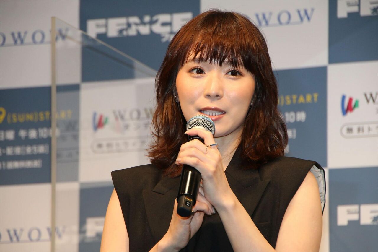 「連続ドラマW フェンス」の完成披露試写会に登場した松岡茉優さん