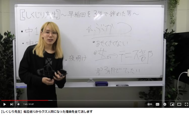 「幼稚園から受験を経験し、中学は都内の超名門私立に受かり入学したもののドロップアウト。アメリカの高校で再起を図り猛勉強の果て海外の超一流大学合格を勝ち取ったはずが、いまはYouTuberとしても活動する変わり者です。自らの経験人数を明かして視聴者の恋愛相談に乗るなど、自身のことを赤裸々に暴露する過激な内容の動画が話題となっています」(ネットに詳しいライター)