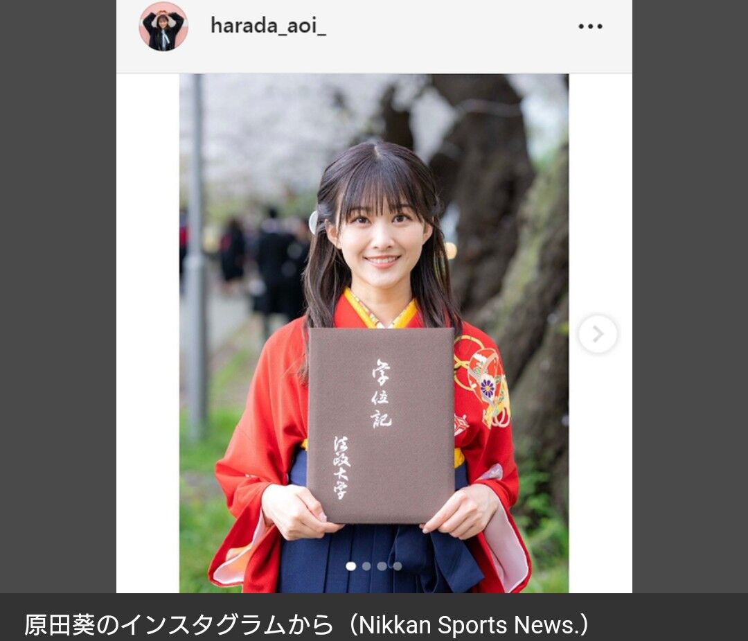 原田アナは自身のインスタグラムを先月27日までに更新し、法大の卒業式に出席した様子を報告していた。