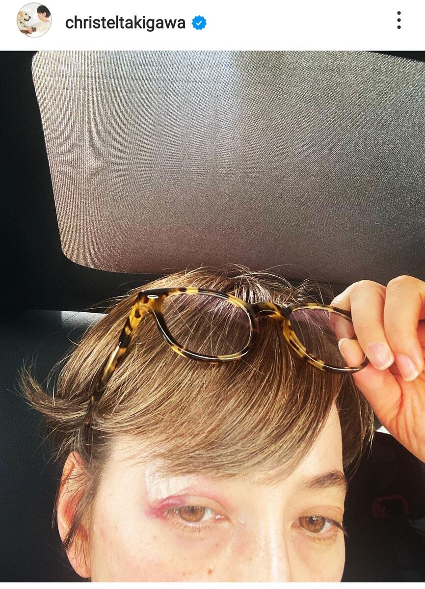 道路交通法の改正で今月1日から自転車に乗る時のヘルメット着用が努力義務となる中、滝川は「突然ですが、昨日自転車で転倒し、目元の眉の脇をぱっくり切り10何針縫ってきました こんな写真を載せるのは、別に見せたいわけでは全くないのですが、身をもって自転車の転倒には気をつけてほしいという想いと4月1日からのヘルメットの努力義務を伝えたくて」とつづり、腫れた目元や痛々しい眼帯姿をアップ。