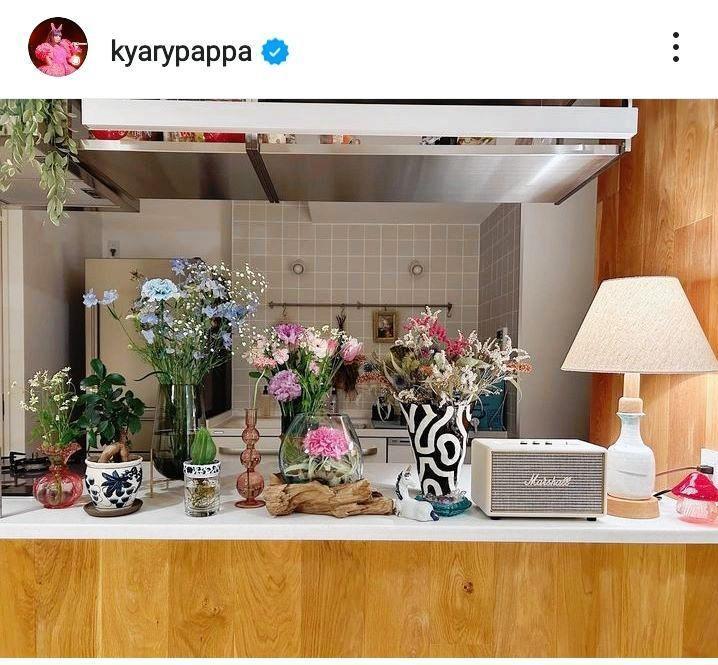 花に囲まれたキッチンに、フォロワーからは「きゃー!素敵なkitchen。幸せの香りがしてきます」「かわいすぎる!!!」「お洒落すぎる」「素敵可愛すぎます」「新居かな?」「素敵お花いっぱいキッチンで♥何作るんかなー」「可愛いですね素敵なキッチン」「かわゆい!きゃりーちゃんらしいセンスが好き」「幸せいっぱいのお台所」などの声が寄せられている。