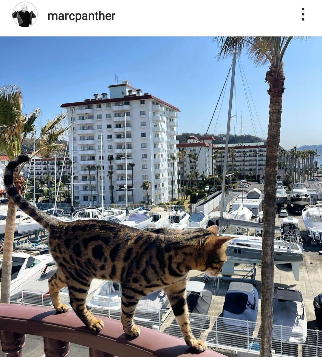 【写真】リードなしでバルコニーの柵上に…「ドン引き」の声が寄せられたマークパンサーと愛猫の様子