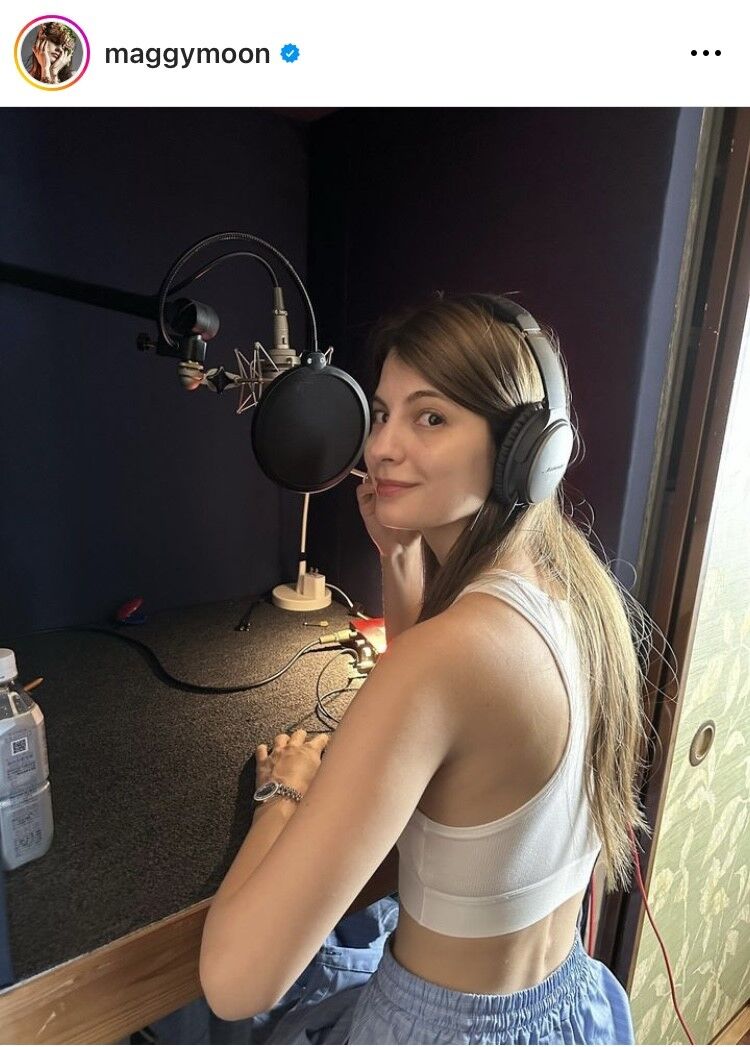 マギーは「YouTubeに必要な音声録りをDaddyの家でしてきた スタジオに行かなくても撮れるようにお家改造してつくったみたい」と記し、涼しげなスポーツブラのトップス姿で、父が作った防音効果のある部屋でマイクの前に座る写真をアップ。