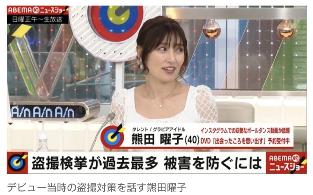 2021年の盗撮事件の検挙数は5019件で10年前から2.6倍に急増し、手口も悪質化。そんな中、13日から「性的姿態撮影罪」が施行されるというニュースを受け、タレントの熊田曜子が自身や周辺の、“盗撮”被害について語った。