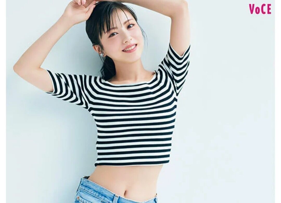 「今まで写真集などでもおなかを見せたことがなかったけど、今しか着られないトレンドのアイテムなので思い切って初挑戦。筋肉がつきづらく、なかなか腹筋は割れてきませんが、シュッと縦にラインが入ったウエストに憧れちゃいます」
