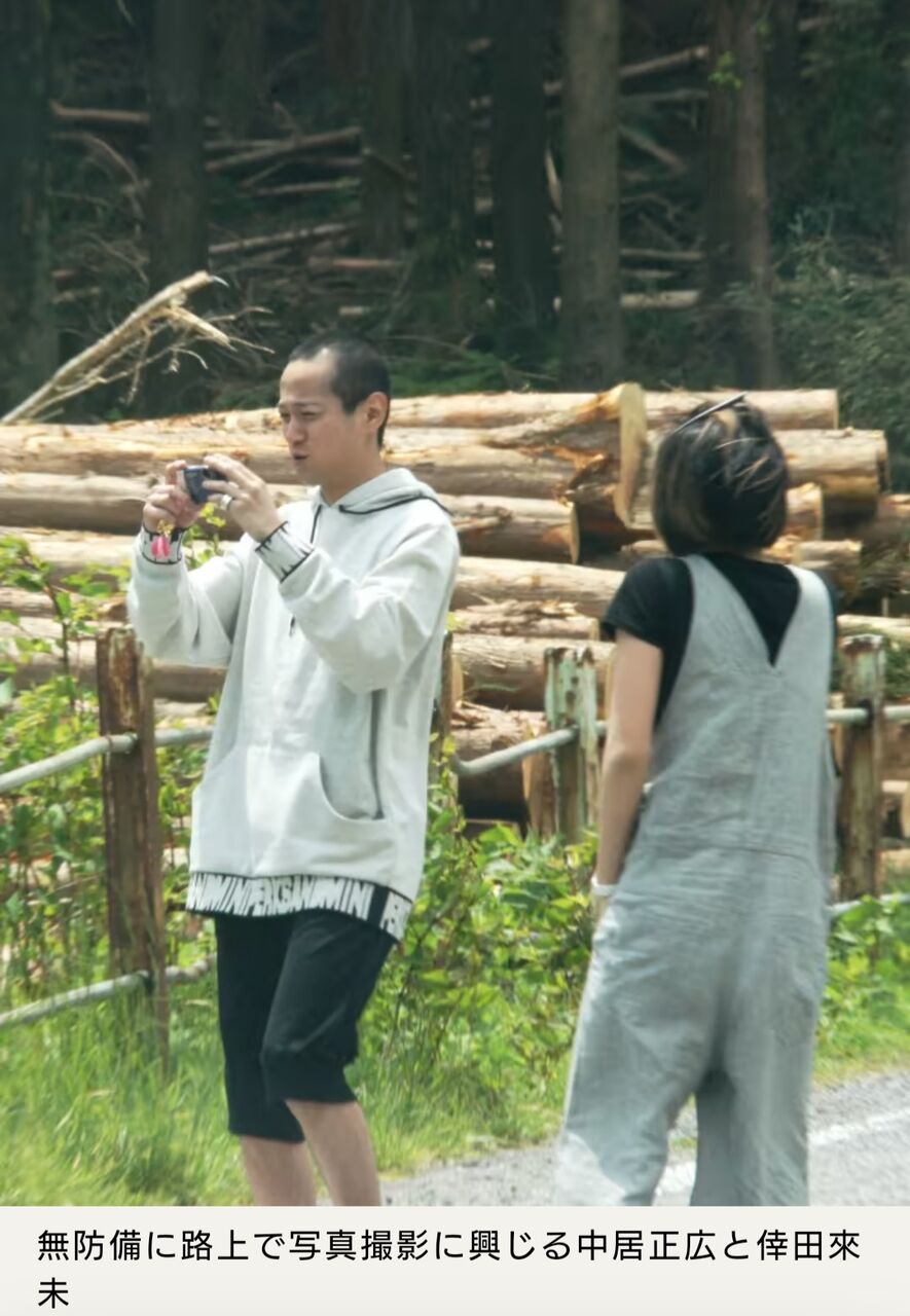 国民的スターと*かっこいい歌姫は、老舗高級旅館に1泊。翌日の午前10時半を過ぎた頃、玄関口に先に現れたのは中居だった。帽子にサングラス、白パーカーに七分丈ズボンと少年のような格好。玄関口に止められた愛車に乗り込むと、遅れて倖田が出てきた。こちらも、オーバーオールにサンダルと少年風のファッションだ。