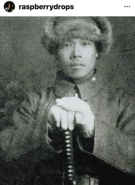 軍刀を持つ白黒写真に「私の祖父の肖像です。大正三年(1914年)生まれ。陸軍准尉」と記し、1935年から3度にわたって応召され、終戦の年45年6月にレイテ島で戦死したことを紹介した。