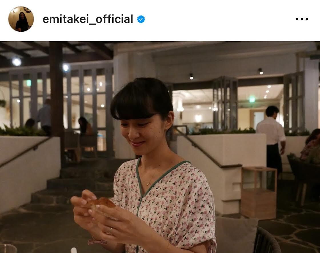 武井はディナー中の不意打ちショットを披露。花柄のワンピースを着用し、ポニーテールヘアの姿をアップした。この投稿には、夫のEXILE・TAKAHIROもいいね!を押している。