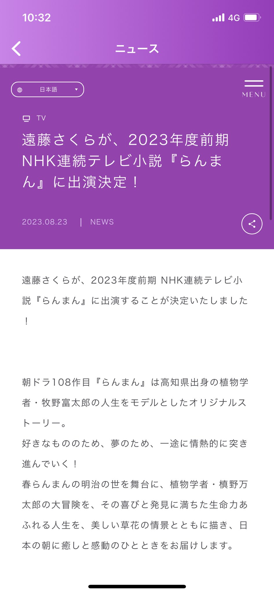 (出典 【速報】遠藤さくら、NHK連続テレビ小説「らんまん」に出演決定!!!)