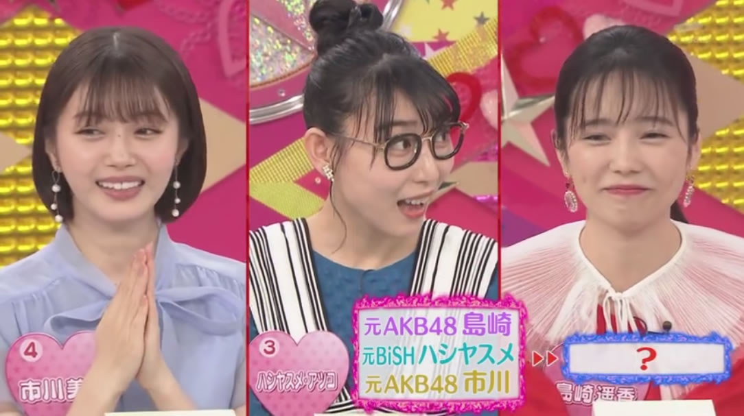 ?元AKB48の市川美織、島崎遥香、元BiSHのハシヤスメ・アツコの3人が最初に指名したのは森田だった。森田は「なにこれー!」と大喜びする。