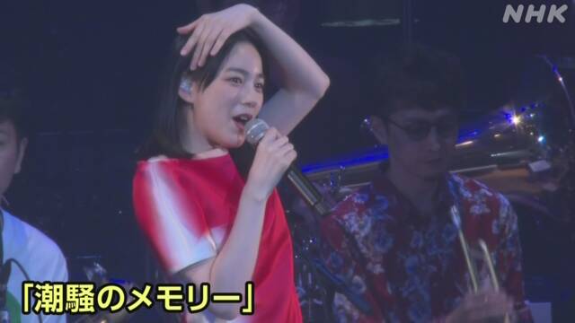 このあと、のんさんがドラマで歌われた「潮騒のメモリー」を歌うと、観客らが音楽に合わせて光る棒を振り、会場は熱気に包まれました。