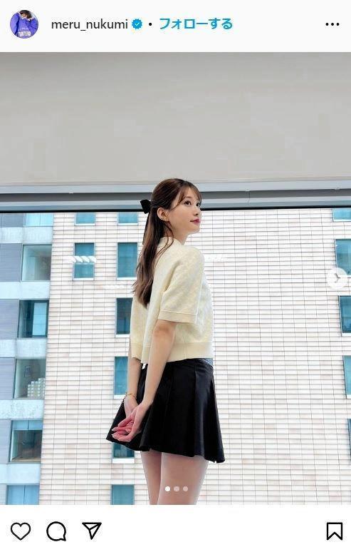21日の投稿で黒ミニスカ&白ブラウス姿で、長い髪を紺リボンで結んでいる写真をアップ。低めのアングルから背中から横顔を写した美スタイルが際立つショットとなっている。