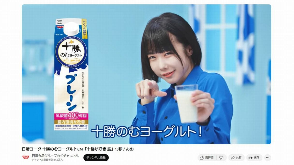 新CM「十勝が好き篇」では、あのが芸人・永野の得意ネタ「ラッセンが好き~」をまさかの完コピ。「ゴッホより~、ふつうに~、ラッセンが好き~」を「ジュースより~、ふつうに~、十勝が好き~」に変えつつ、あのがライブ以外ではまず見られない全力の動きで永野の振り付けを再現している。