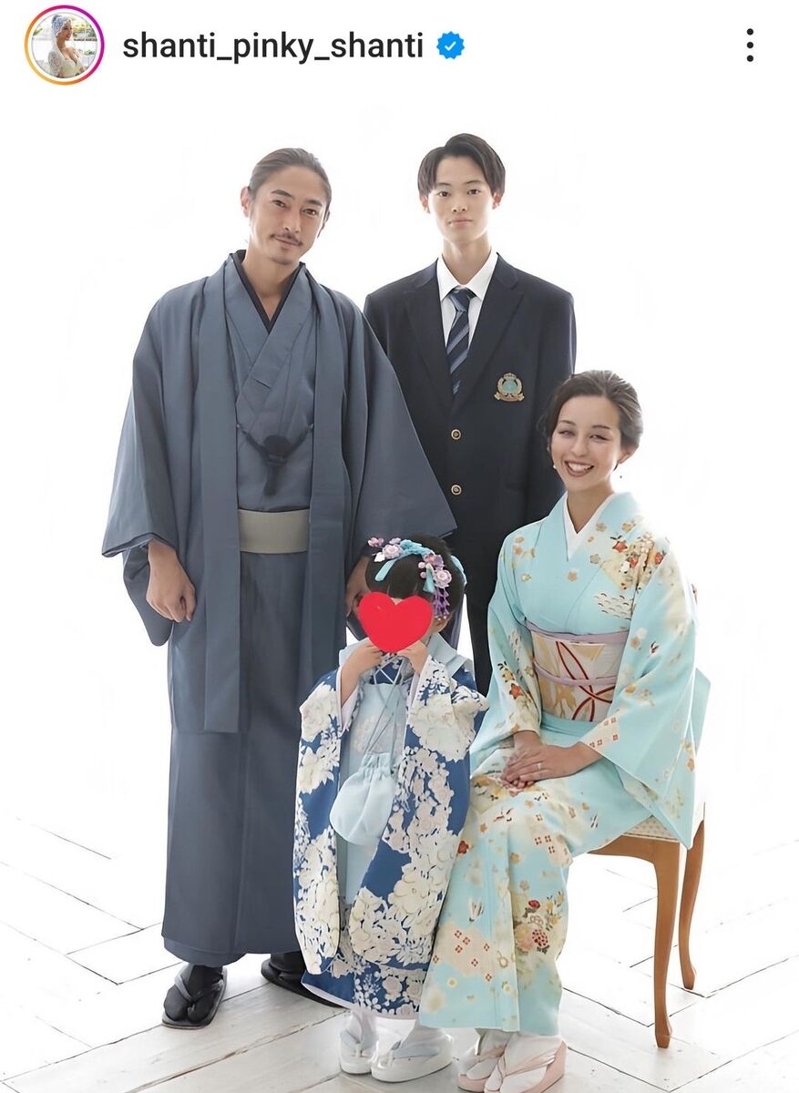 サ*ク限定でインスタライブを行うことを告知し、「テーマは【家族・夫婦】について」と発表。夫の窪塚と、俳優やモデルとして活躍している息子の愛流(あいる、20)、そして5歳の娘と記念撮影して和装姿を見せた。