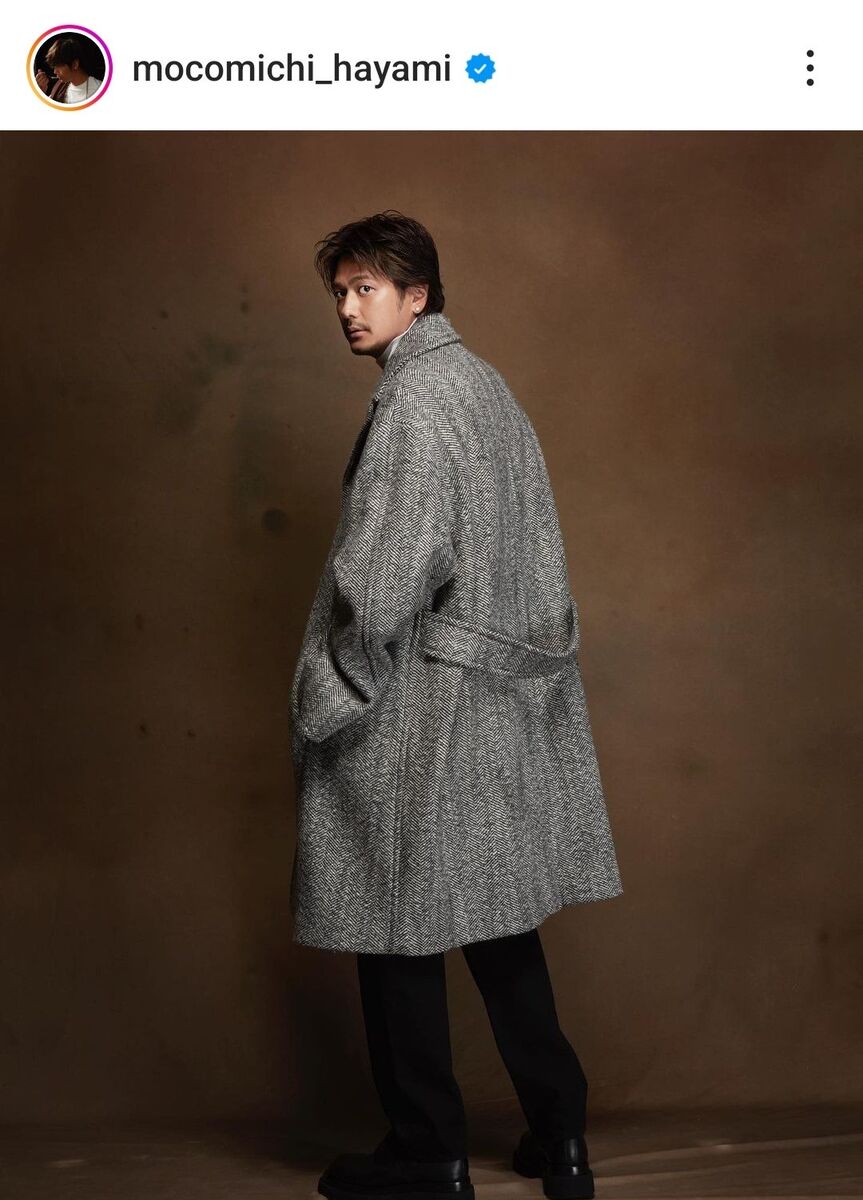 「“オタクなオトコ”のスタイルPART2」とつづり、イタリアの高級ブランド「ボッテガ・ヴェネタ」のファッションを着こなした。グレーのコートを上品に羽織り、「#大人なモードの遊び方」を演出した。