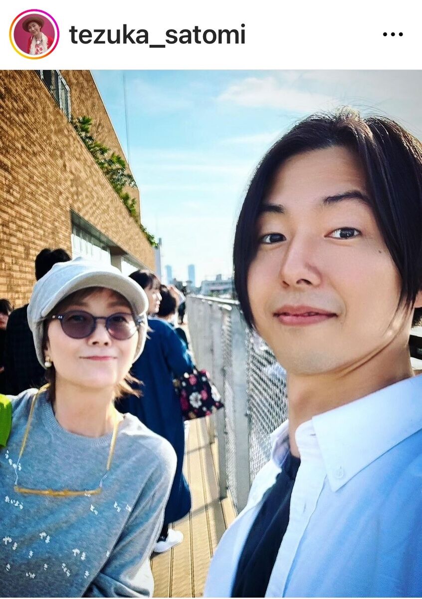女優の手塚理美が5日、自身のインスタグラムを更新。次男との「デート」を公開した。