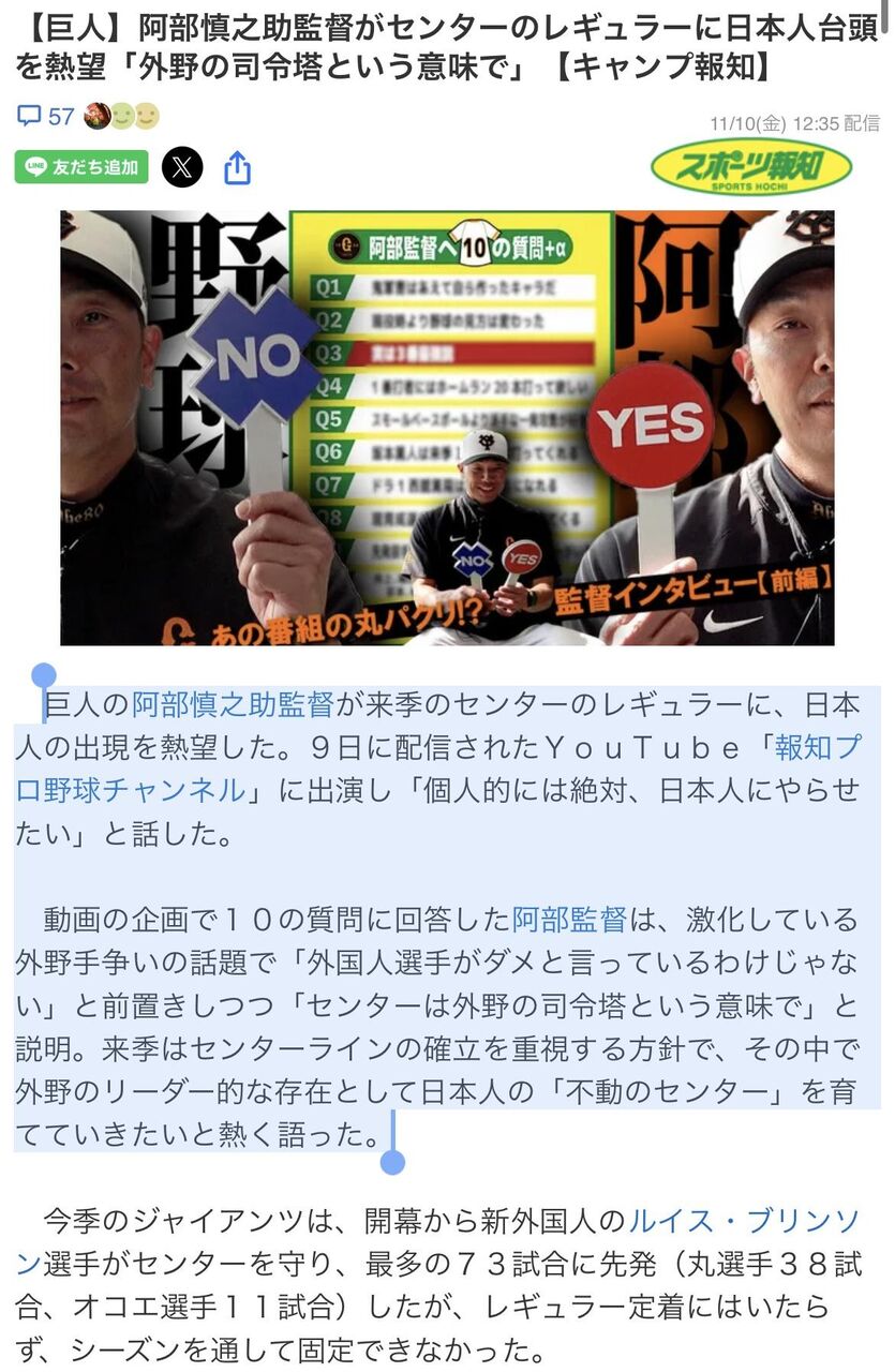 (出典 【悲報】巨人阿部監督、「日本人のセンター」にこだわってブリンソン放出w w w w w w w w w w w w w)