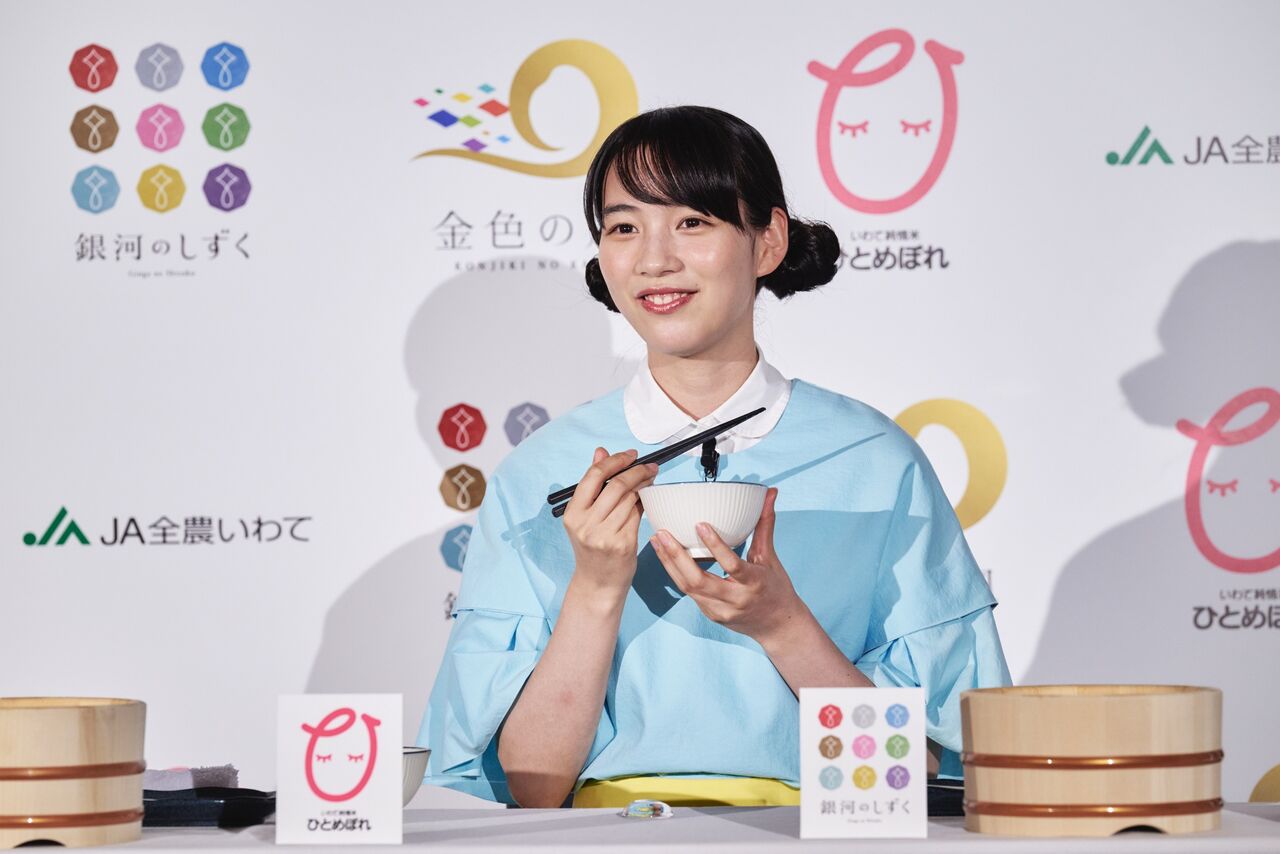 イベントでは「ひとめぼれ」と「銀河のしずく」の試食も。自分でお櫃から茶碗によそい食べ比べ。「こうやって食べ比べてみるとお米の味や食感の違いが分かるので、お米だけ食べてもおいしいし、どっちが好きだなとか、お料理や気分で変えるのも楽しいなと思いました。何度も食べたくなるお米だと思います」と強調した。
